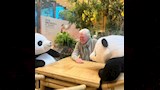 لقطة طريفة.. حسين فهمي يلتقط صورًا مع "باندا" في الصين