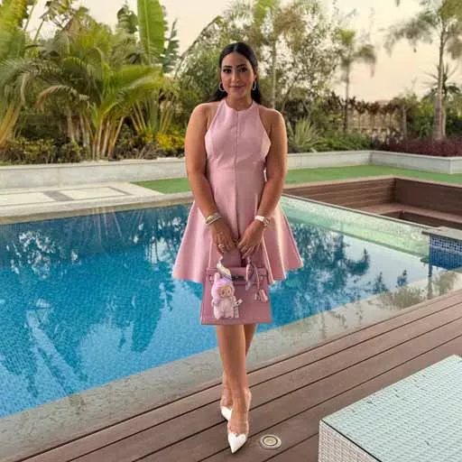 بوسي تظهر بفستان قصير أمام حمام السباحة.. والجمهور يعلق (صور)