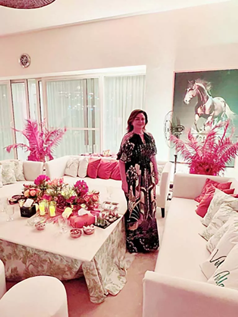 وظهرت إلهام بإطلالة أنيقة ارتدت خلالها فستانًا طويلًا باللونين الأسود والبيج، ووضعت مكياجًا هادئًا أبرز ملامحها.