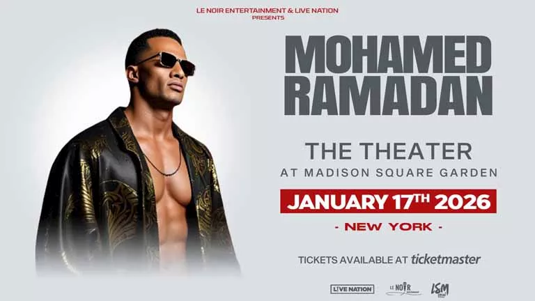 طرح الفنان محمد رمضان، بوستر الدعاية لحفله، والمقرر إقامته على مسرح ماديسون سكوير بنيويورك بالولايات المتحدة الأمريكية، في شهر يناير المقبل لعام 2026.