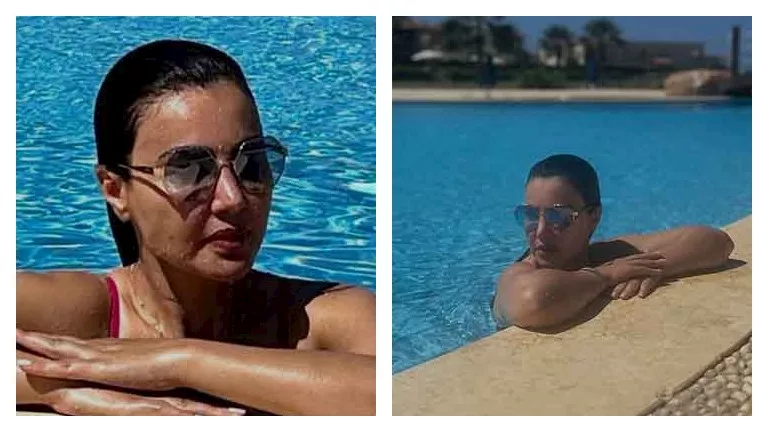 شاركت الفنانة دينا فؤاد جمهورها مجموعة صور جديدة أثناء استمتاعها بالعطلة الصيفية، وظهرت داخل حمام السباحة ولاقت الصور إعجاب متابعيها.