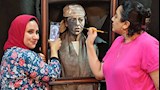 وأضاف: الإسكندر الأكبر، مثلاً، تمثاله المصنوع من الرخام يعكس الهيبة والعظمة، وتمت معالجة الشكل النهائي للشخصية على العنصر البشري ليعبر عن هذا البعد التاريخي، بينما ريا وسكينة تم تجسيدهما بألوان الأبيض والأسود، في إشارة للغموض والعنف والإسقاط النفسي لتلك المرحلة، أما سيد درويش، فقد جُسّد كلوحة مرسومة مليئة بالألوان والحيوية، لكونه رمزاً للبهجة والفن والتراث الموسيقي.