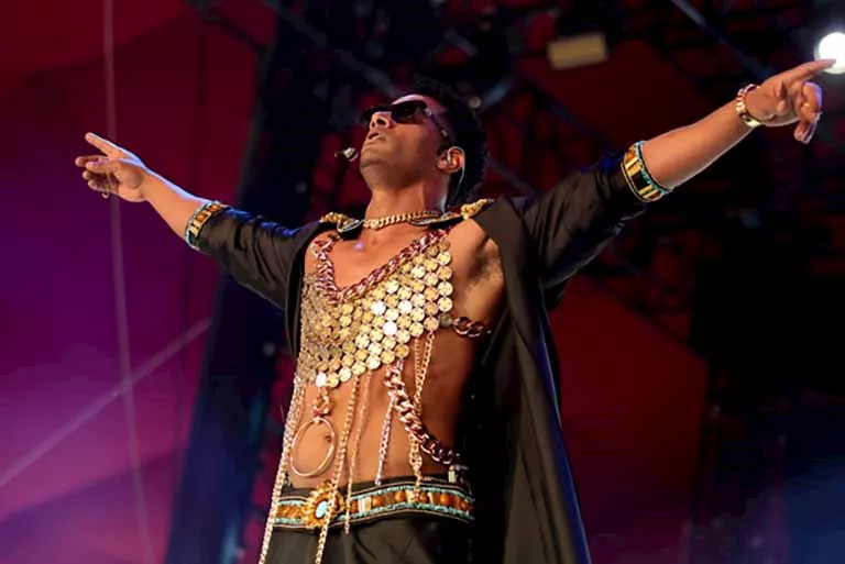 أحيا الفنان محمد رمضان، حفلا غنائيا العام الماضي في مهرجان كوتشيلا بالولايات المتحدة الأمريكية، وارتدى محمد رمضان وقتها ملابس وصفها البعض بـ النسائية، وهو ما دفع رمضان للتصريح بأنه حرص على الظهور بإطلالة مصرية خالصة.