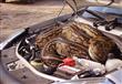 لحظة اكتشاف سائق لأفعى ضخمة مختبئة تحت غطاء محرك سيارته