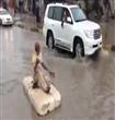 ففى الفيديو الاول استغل احد الشباب السعودى تراكم مياه السيول والامطار فى الشوارع ليقوم بجولة على متن دراجته المائيه وفى الفيديو الثانى قام أحد الاشخاص بجولة على متن قارب يدوى لا نعلم كيف قام بتصنيعه ليتجول فى الشوارع المليئه بالمياه.