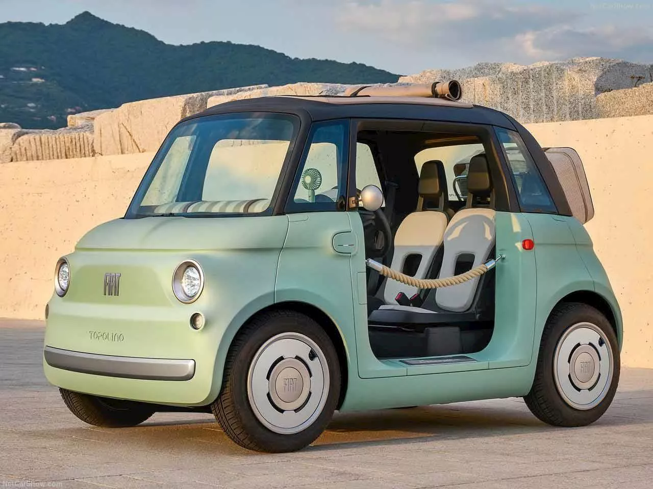 وتتوفر السيارة الكهربائية Topolino متناهية الصغر الجديدة المخصصة للعمل في المدن بنسخة Dolce Vita، والتي تتألق بسقف قماشي قابل للطي مع أحبال بدلا من الأبواب.