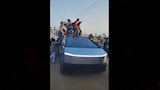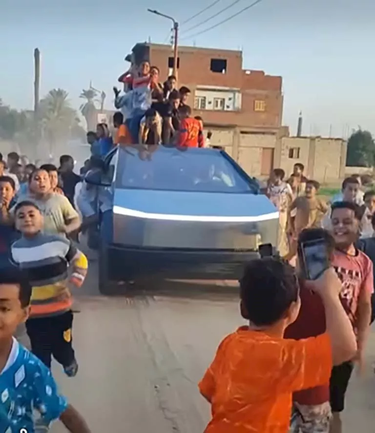 ويظهر في الفيديو المرشح، الذي تشير مصادر إلى أنه أحد رجال الأعمال المعروفين بالمحافظة، وهو يتجول داخل سيارة "تسلا سايبر تراك" في شوارع قرية النصيرات، بينما يقف عدد من الأطفال فوق السيارة يرقصون ويهتفون باسمه تأييدًا له.