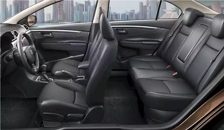 يبلغ الطول الكلي لسوزوكي سياز 4490 ملم، والعرض 1730 ملم، والارتفاع 1485 ملم، مع خلوص أرضي يصل إلى 160 ملم، فيما تبلغ سعة صندوق الأمتعة الخلفي 495 لترًا، ما يعزز من طابعها العملي.