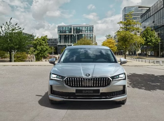 وتبرز “Škoda Superb 2025” بتصميم خارجي يعكس هوية سكودا ، حيث تأتي الواجهة الأمامية بشبك عريض جريء ومصابيح حادة مزودة بتقنية “Crystallinium” ، بينما تمتد الخطوط الانسيابية للهيكل بسلاسة نحو الخلف لتمنح السيارة حضورًا قويًا وكفاءة ديناميكية هوائية عالية.