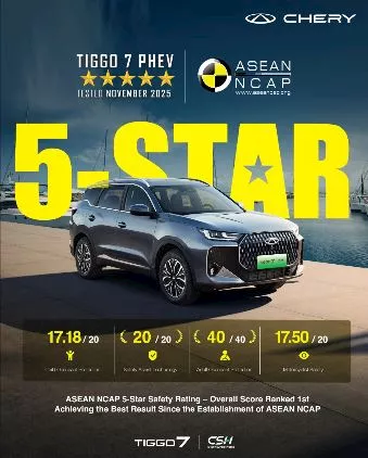 وجاء هذا الإنجاز بعد أن سجلت TIGGO7 أداءً مميزًا في اختبارات ASEAN NCAP لعام 2025، حيث حققت 94.68 نقطة، وهي أعلى نتيجة منذ تأسيس البرنامج عام 2011.