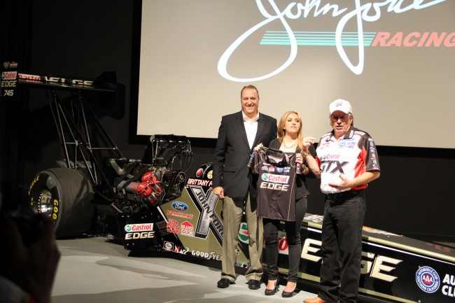 فى خطوه جذبت انظار العديدين من متابعى كاسترول اعلن الفريق عن انضمام اول امرأه افريق كاسترول جون فورس هذا العام لتشارك فى مسابقه Top fuel.ويعتبر هذا السباق تحديا كبيرا لاختبار مدى كفاءة زيوت كاسترول نظرا لما يختويه هذا السباق من ضغط شديد على محركات السيارات حيث تنطلق السيارات بسرعات كبيره جدا تصل ل 500 كم فى الساعه.وتستخدم السيارات انواع مختلفه من الوقود غير البنزين والديزل ويتكون وقودها من 90% نترو ميثان بالإضافة إلى 10% من مادة الميثانول، وبسبب هذا الخليط في وقود تستطيع السيارات الوصول من الثبات إلى سرعة 160 كم/ساعة في 0,7 ثانية فقط، الأمر الذي يمثل تحدي حقيقي لكاسترول في عملية حفاظ زيوتها على مثل هذه المحركات.بريتنى فورس هى المتسابقه الجديده المنضمه لفريق كاسترول وهى ابنة المتسابق الشهير جون فورس والذى صرح فى مؤتمر صحفى أن ابنته قد تدربت على سيارات فريق كاسترول-جون فورس طوال 2012 استعدادا لمشاركتها في بطولة هذا العام، وأنها كانت أسرع فرد من عائلته استطاع قيادة هذه السيارات، بالإضافة إلى أن في ديسمبر الماضي انضمت بريتني رسميا لرابطة NHRA، وأنها تستطيع المشاركة في أي من سباقاتها بداية من هذا العام، والذي سيكون في مدينة بومونا الأمريكية.