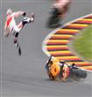 وكانت تجارب الأمس قد شهدت سقوط حامل اللقب الإسباني "خورخي لورينزو" دراج فريق "ياماها" مما إستدعى إلى إنسحابه من السباق الألماني والتوجه لبرشلونة من أجل الخضوع لعملية جراحية جديدة بعد تحطم صفيحة التيتانيوم التي وضعت له بعد أن تعرض لكسر في عظمة الترقوة قبل أسبوعين على حلبة "آسن" خلال جائزة هولندا الكبرى حيث عاد بعد يوم من العملية وشارك في السباق وحل خامساً.
