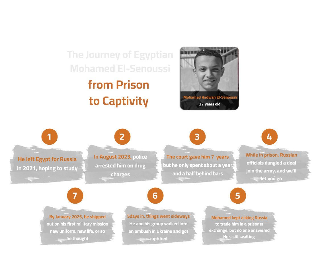 Mohammed al-Sanousi’s mother is still holding out hope. She wants the Egyptian government to step in and help her son, even though the Egyptian Ministry of Interior already revoked his citizenship after he joined the fighting in Russia. She earnestly appeals for his case to be considered a "humanitarian matter for the sake of his family," stating, “We had no idea what he was doing over there. If I’d known what was coming, I never would’ve let him go to Russia to study.”