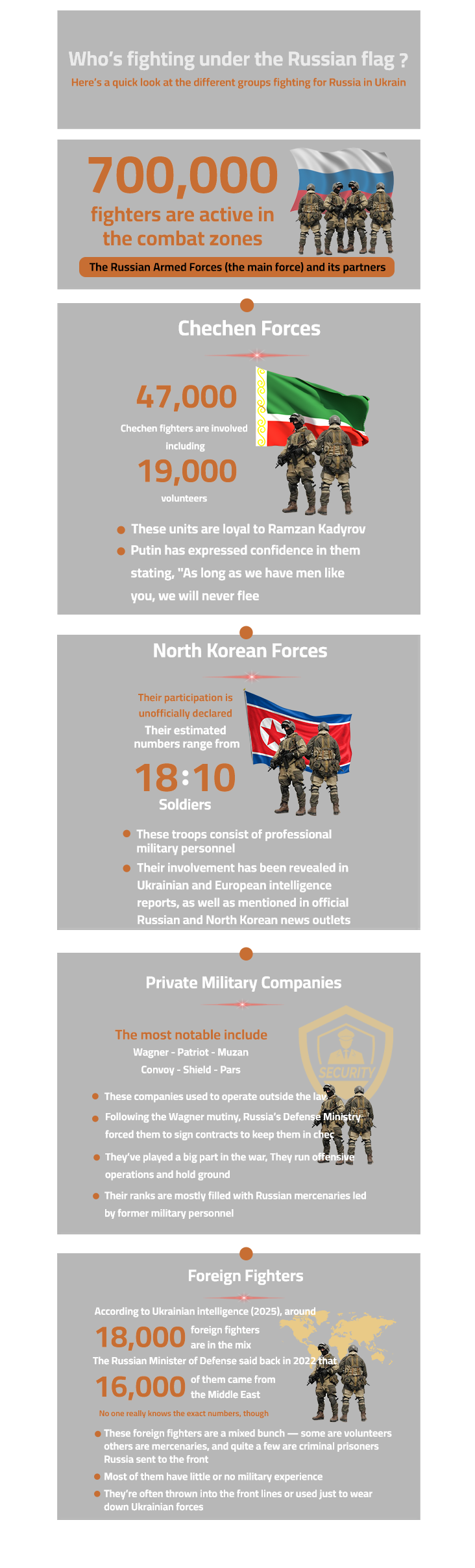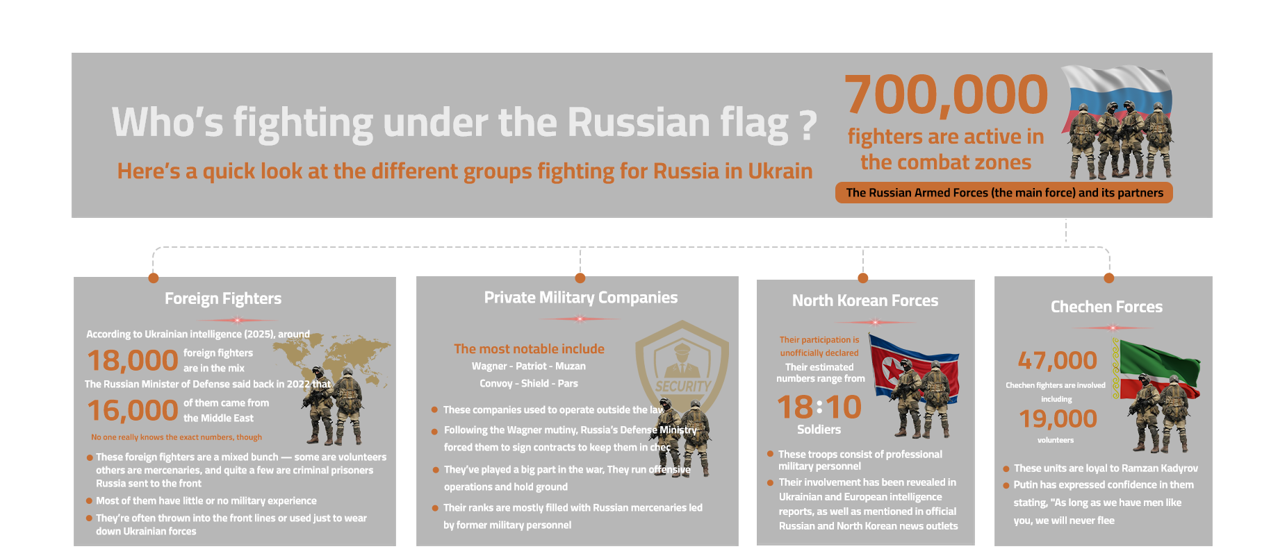 Reports suggest that the survival rate among these foreign combatants is low. Popovich attributes this to inadequate combat experience and deployment to high-risk front-line positions or missions with a high probability of fatality. This is further supported by accounts from five Egyptian recruits in the Russian military.