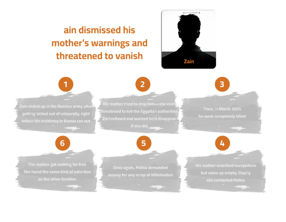 Polina and her associates in Egypt operate a recruitment network that extends from Cairo all the way to the far corners of Upper Egypt and the Delta. You keep hearing the same stories from victims and their families. Local brokers — they’re the first step for Egyptians who end up fighting in Ukraine — always seem to find new ways to dodge the rules the Egyptian government put in place to stop people from joining the Russian army. And all this came to light right after we published the first part of this investigation. Take Mustafa Nassar, for example. What happened to him in mid-December 2025 says a lot.