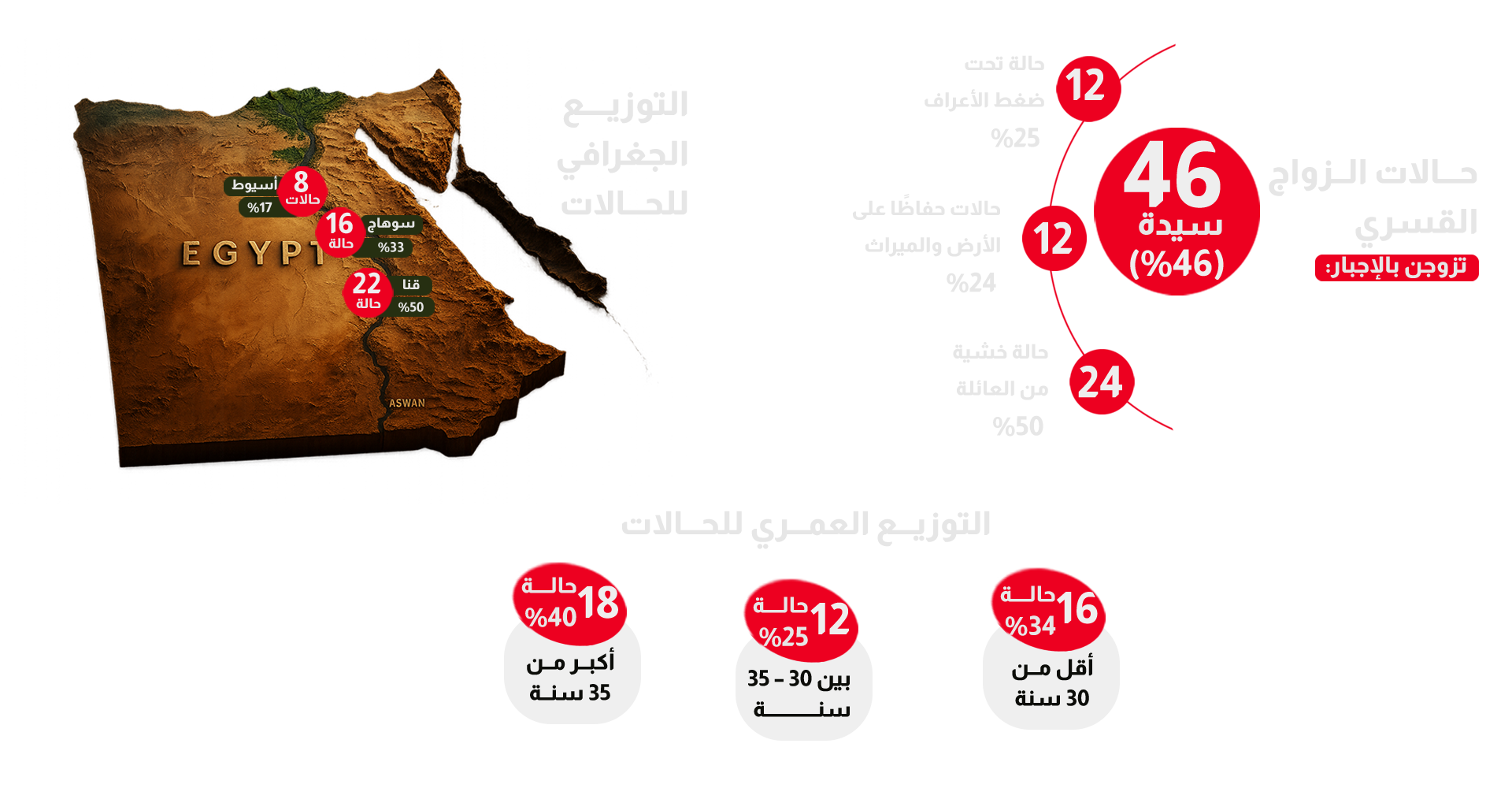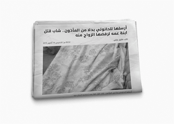 في صباح غائم من أواخر يونيو 2018، اقتحم ثمانية مسلحين من أقارب " صبري ص." منزله بمحافظة قنا، انتزعوه من فراشه رغم مرضه، واقتادوه إلى أرضه الزراعية حيث كانت زوجته تيسير تعمل مع طفليها.