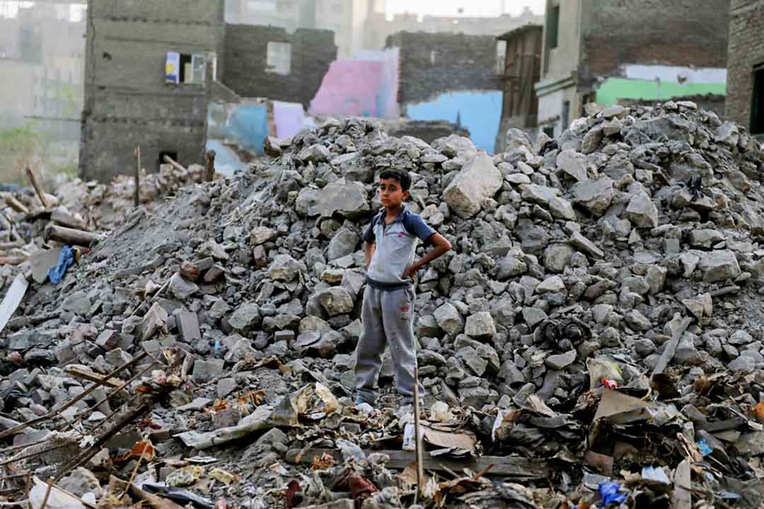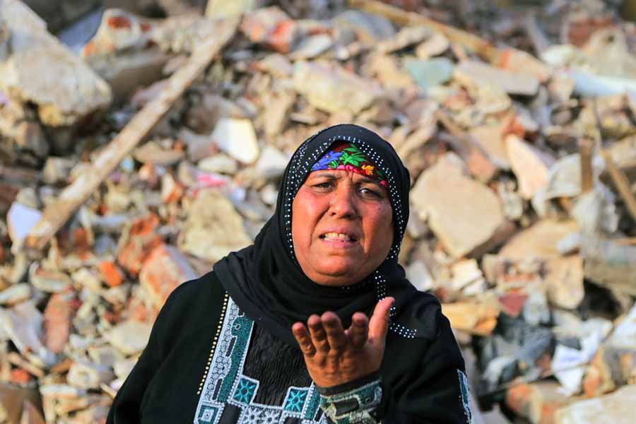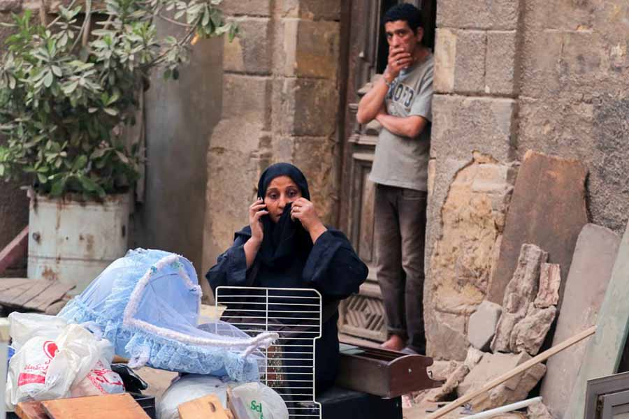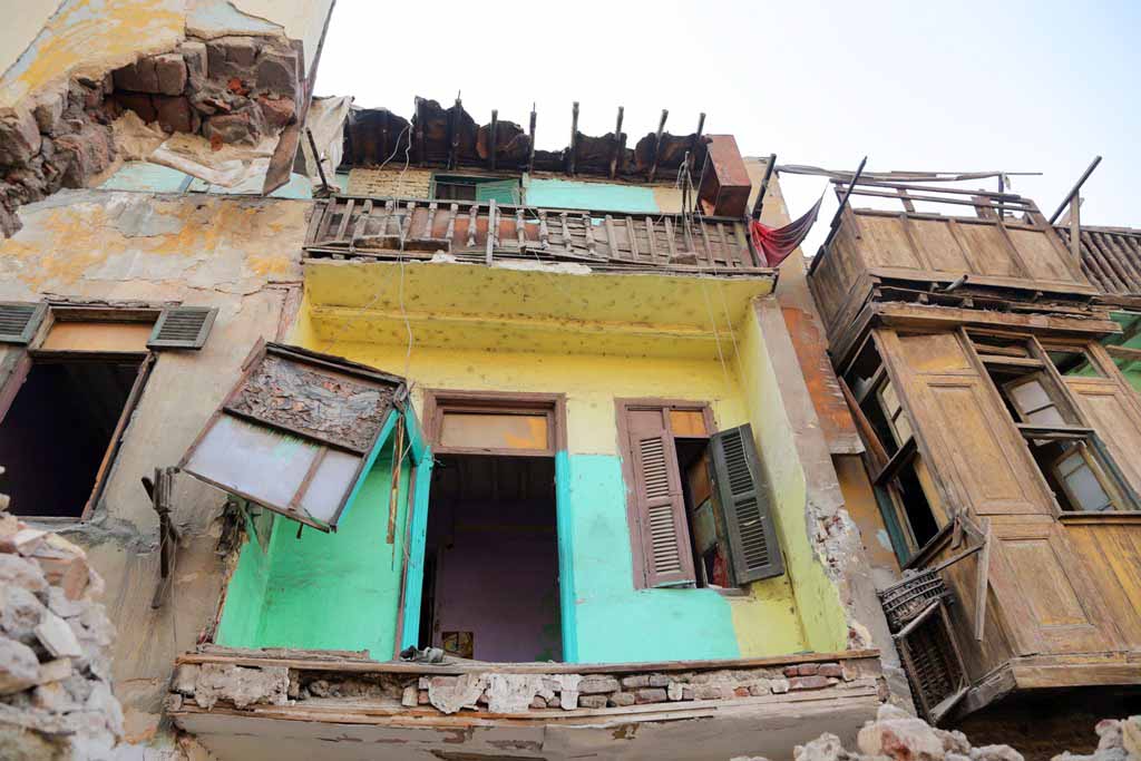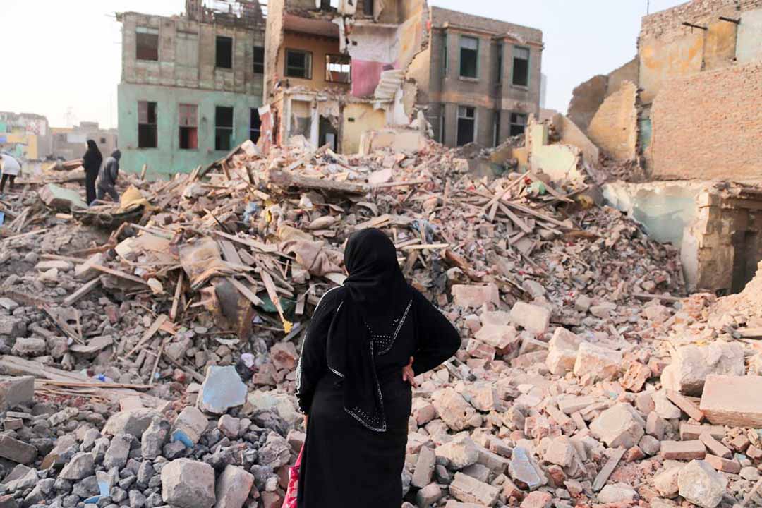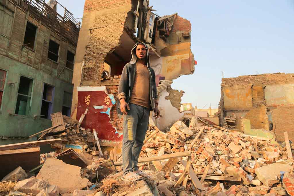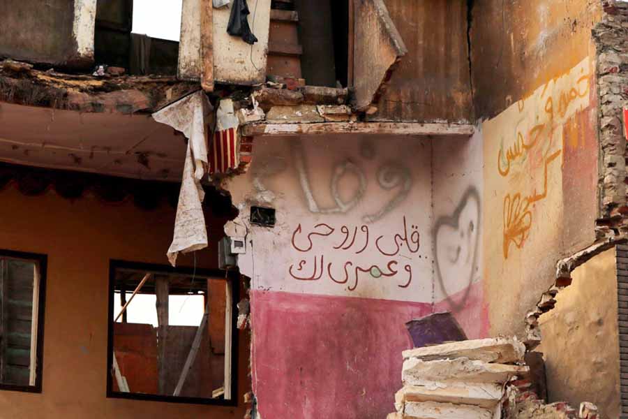 أسفل عبارة خطها أحدهم قبل الرحيل "مال الناس كناس"، جلست أم كريم وهي تضع يدها على خدها الأيسر، وضعت ما تبقى من أكواب الشاي الخاصة بمقهاها المهدوم على أنقاض منضدة صغيرة، وصارت تخدم عمال الهدد "قهوتي والأوضة اللي كنت فيها راحوا خلاص.. ولسه مخدتش تعويض"، تقولها وهي تقلب كوبا من الشاي لعامل غطته الأتربة من رأسه حتى أخمص قدمه.