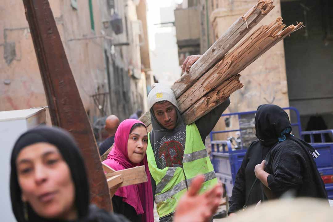 لم تكن "أم حسن" وحدها التي تتألم؛ شوارع المثلث تعج بالسكان الخارجين من أرض الذكريات. في ممر ضيق كان علم مصر يرفرف فوق منزل تهدم نصفه، بينما أهله يهبطون الدرج في عجالة وكل منهم يحمل ما بقي من أثاث "إحنا ع الحال ده من صباحية ربنا، صحونا من النوم وقالولنا شيلوا حاجاتكم عشان النهاردة ميعاد الهدد"، يقولها محمد علي وهو يتفق مع سائق السيارة ربع النقل كي تقله لمنزل خالته بمنطقة بولاق الدكرور.