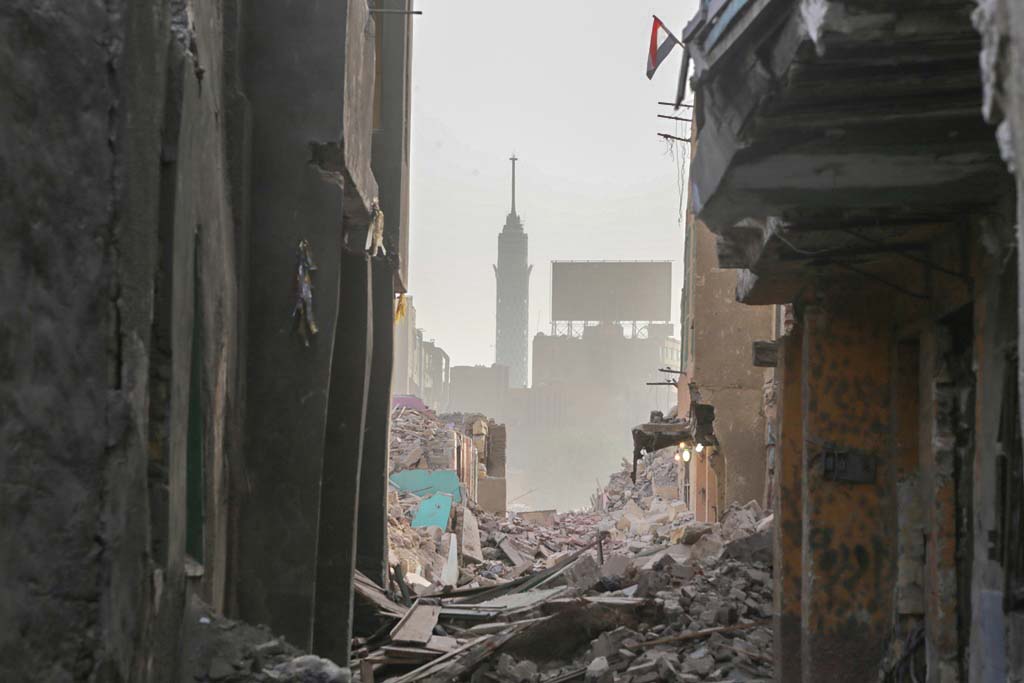 على وقع ارتطام المعول على جدار المنزل الأخير، كان قلب "أم حسن" يتفتت ألمًا؛ أصوات النحيب تغلف المكان، برج القاهرة ومبنى التليفزيون وفنادق العاصمة لم تعد تحجبها المنازل المتراصة جنبا إلى جنب، تلاشت أطباق الدش، وشرفات البيوت. خفتت أهازيج الصبية، وشجار النساء في الحواري، لم يُناد الباعة الجائلون على بضاعتهم يومها، ولم تستطع الجارة مناغشة طفلة صديقتها؛ تبدلت المعالم. بات زوال مثلث ماسبيرو أمرًا لا فكاك منه.