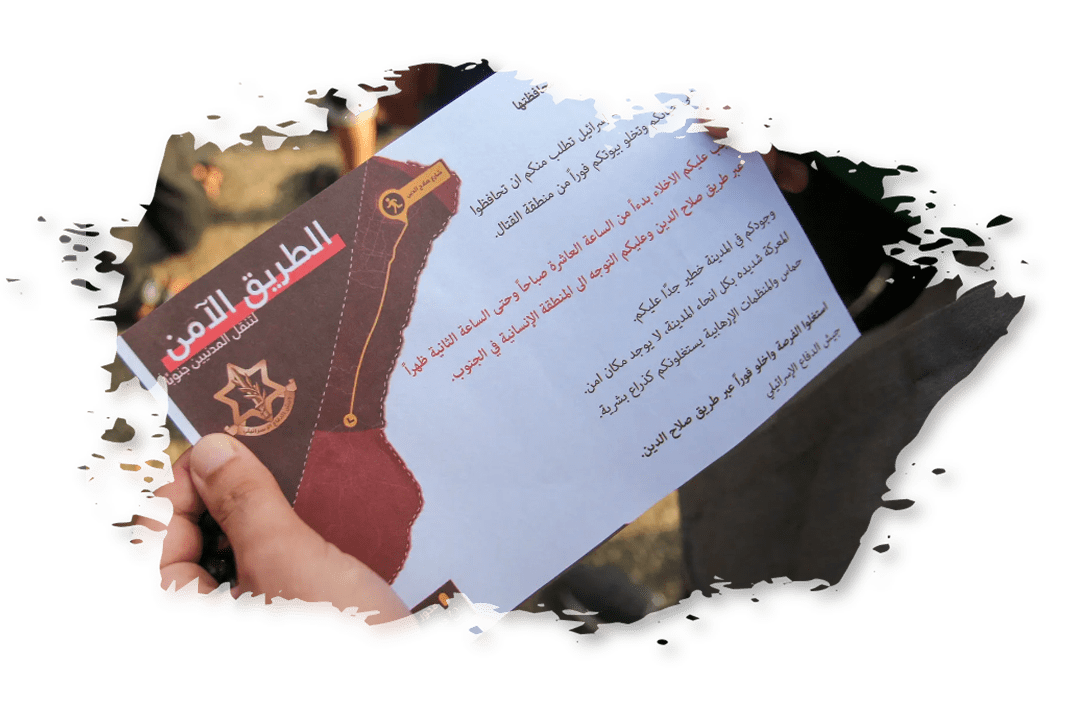لكن المنشورات التحذيرية ظلت تسقط عليهم من السماء، وتدعوهم إلى التوجه إلى المخابئ جنوبًا.