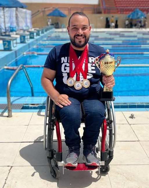 بعصا في يمينه، وحقيبة على ظهره مليئة بالأدوات الرياضية، يقف العشريني أبو بكر محمد، على طريق رئيسي يفصل بين قريته ووجهته. يستمع لصوت الحافلة تقترب، لكنّه لا يسارع للركوب، منتظراً يداً تأخذه برفق لمقعد بالحافلة، فإعاقته البصرية تمنعه من التزاحم. ينطلق بعدها في رحلة تزيد على مئة كيلومتر، تاركاً خلفه مركز شباب قريته "الكدّاية"، الخالي تماماً من أي تجهيزات مناسبة للرياضيين من ذوي الإعاقة.