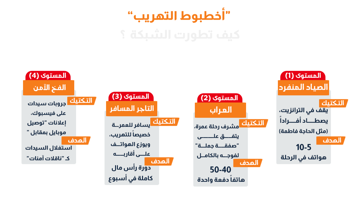 امتدت أذرع الأخطبوط إلى العالم الافتراضي. في مجموعات "فيسبوك" الخاصة بالسيدات، رصدنا إعلانات مبطنة: "توصيل موبايل آيفون مع معتمرات عائدات للقاهرة بمقابل مادي مجزٍ" -فمجموعات السيدات سوق رائجة-. تواصلت مع إحدى "السمسارات" مدعياً أنني سيدة، فردت برسالة صوتية تكشف عن احترافية عالية وشبكة لوجستية متكاملة تعمل عبر الحدود تستهدف السيدات في الأساس.