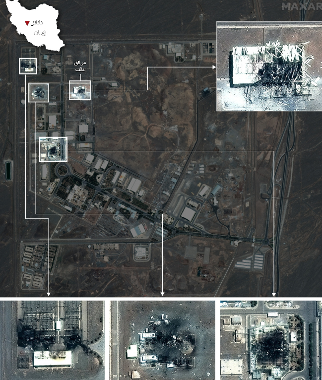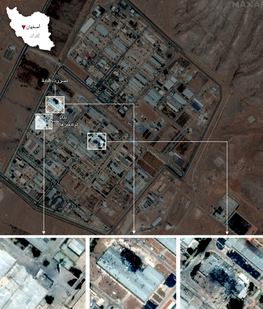 أضرار منشأتي نطنز وأصفهان بعد الضربات الأمريكية - يونيو 2025