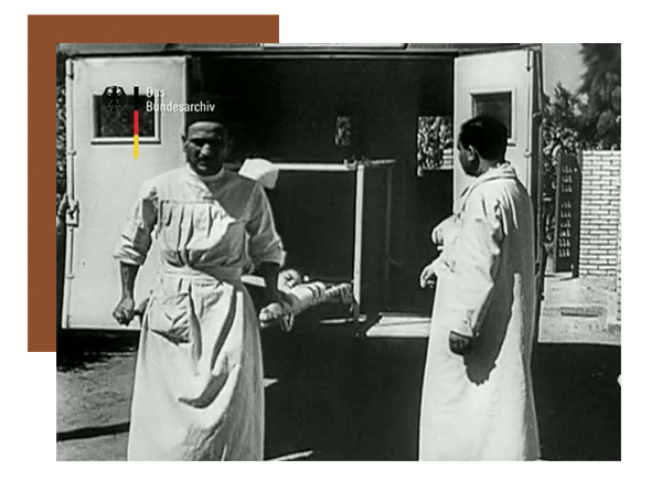 عمليات نقل مصابي الكوليرا و تعقيم وتطهير الشوارع في مصر عام 1947 (الصورة من فيلم عن العالم عام 1947 من الأرشيف الفيدرالي الألماني)