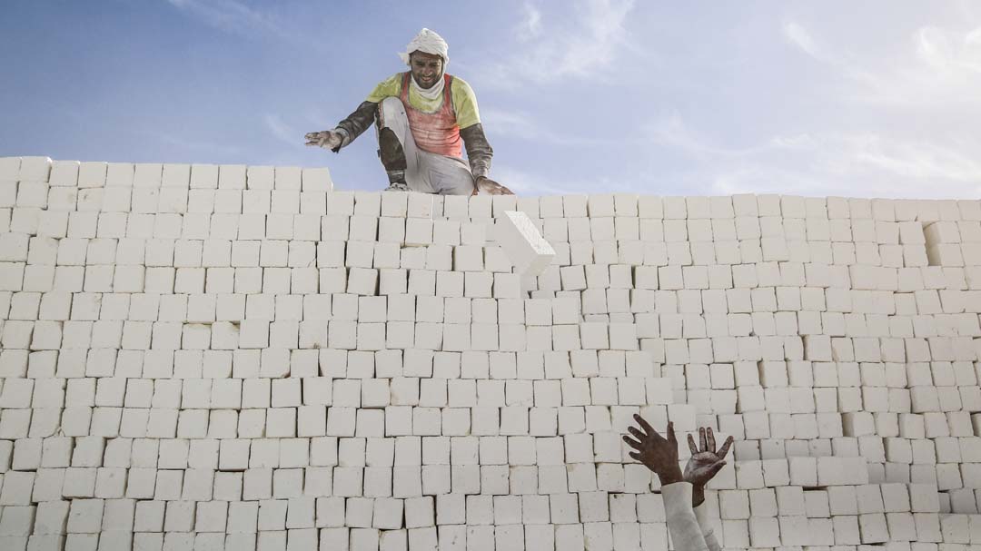 لا توّضح صور فاروق الصوت العالي للآلات "محدش بيكون سامع التاني"، أشبه بجُزر منعزلة يعمل كل فرد على حده، يستخدمون النظارة والكمامة القماشية واقيًا من ذرات الغبار الأبيض، فيما منحتهم وجود العدسات روحًا مرحة "عارفين إنها بتبين أثر شغلهم"، خاصة لدى العُمال الذين يشتغلون في جمع الطوب، وهم الأقل إصابة طالما بعيدين عن الآلات.