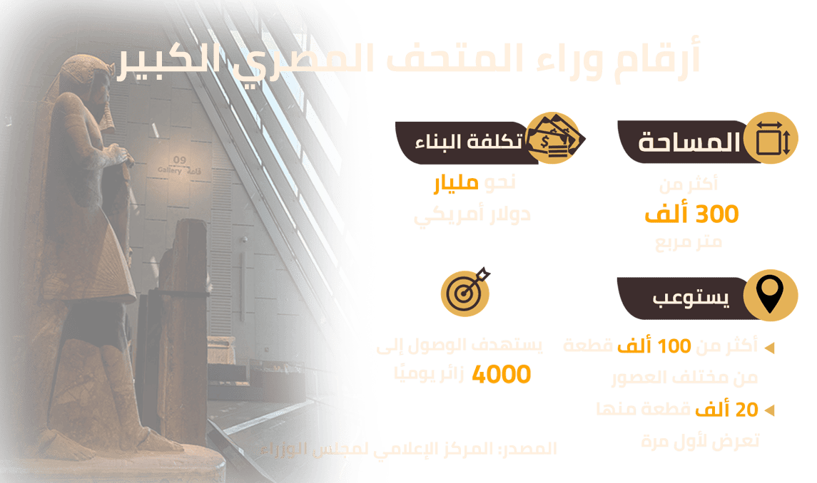 - معلومات واردة على صفحة المتحف المصري الكبير على موقع "فيسبوك"