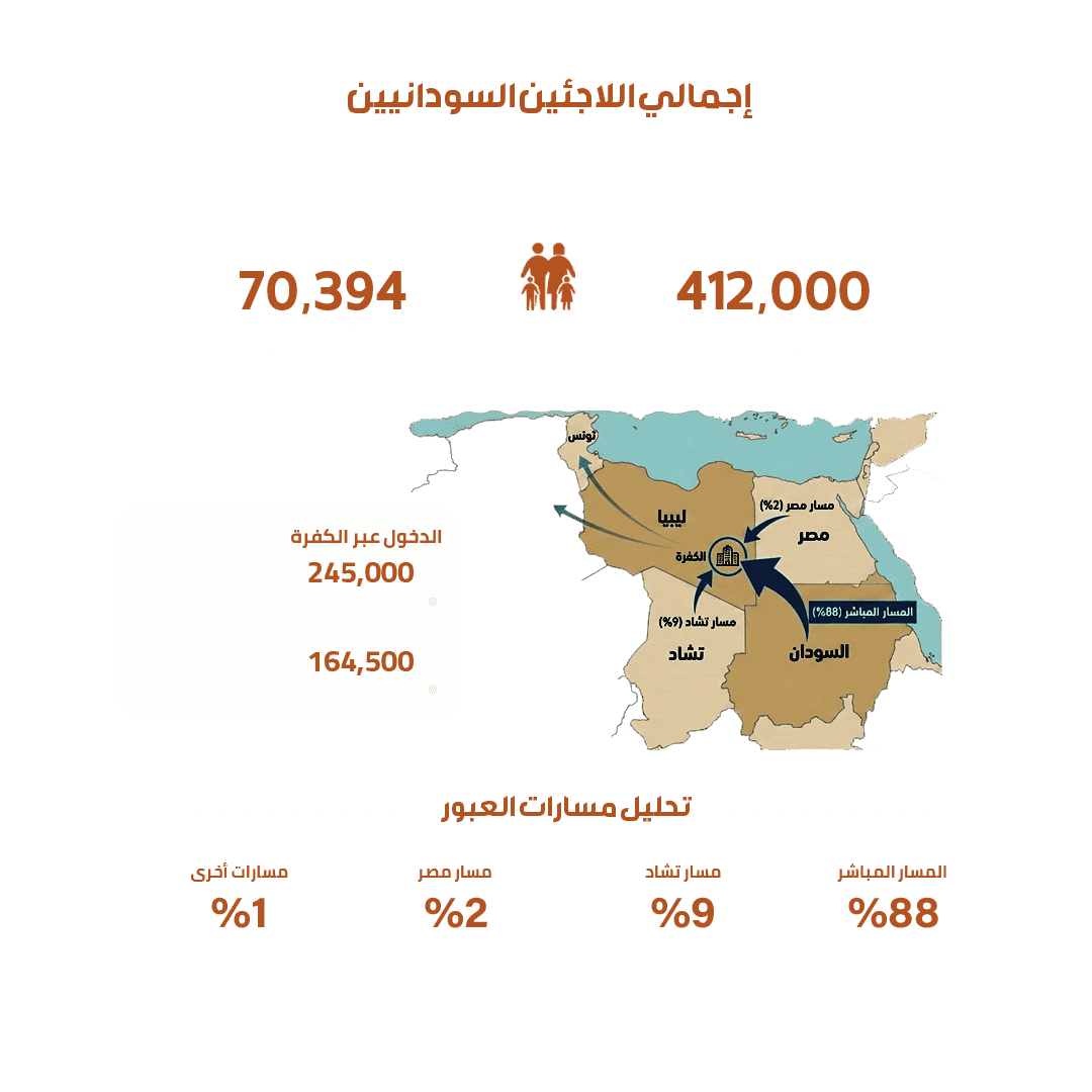 ويضيف المصدر نفسه أن اللاجئين "يُنقلون في سيارات دفع رباعي مكتظة، دون أي اعتبارات إنسانية. وبمجرد انطلاق المركبة بسرعة عالية، لا يتوقف السائق لأي سبب، حتى في حال سقوط أحد الركاب، مشيرًا إلى أن تعطل السيارة هو العامل الوحيد الذي قد يوقف الرحلة".