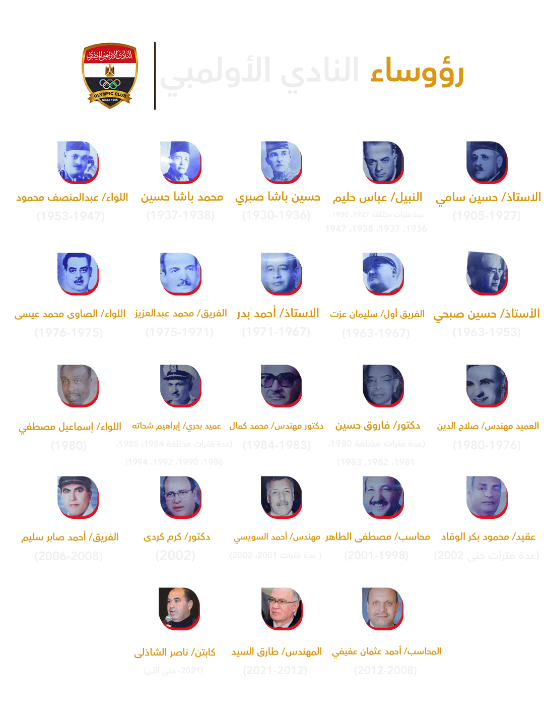 وبعد تأسيسه، تم اختيار حسين سامي، مدير مصلحة الجمارك في ذلك الوقت، ليكون أول رئيس للنادي.