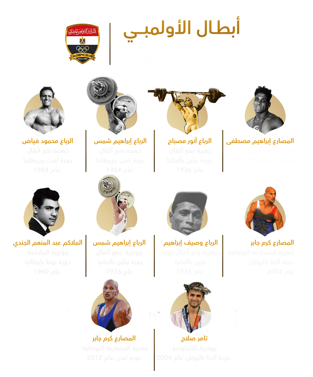 في دورات 1936 و1948، حقق العديد من أبطال النادي نتائج مبهرة في رفع الأثقال؛ حيث حصد إبراهيم شمس الميدالية الذهبية في أولمبياد برلين 1936، كما حصد وصيف إبراهيم على المركز الثالث.