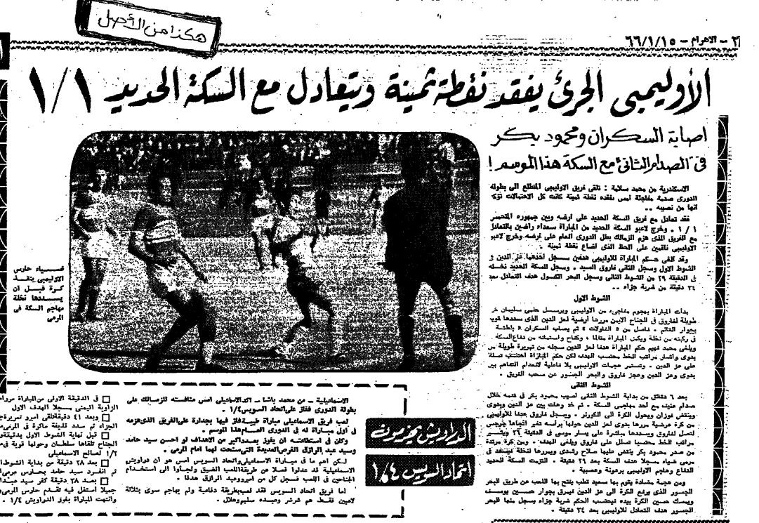 تصدى عصام للكرة، لكن فاروق السيد تابعها وسجل الهدف الأول للفريق السكندري، لتشتعل مدرجات جماهير الأولمبي ويطلق الحكم صافرته لكي يجلس الجميع في أماكنهم، ولكن بعد دقائق نجح طه إسماعيل فى تعديل النتيجة للأهلي.