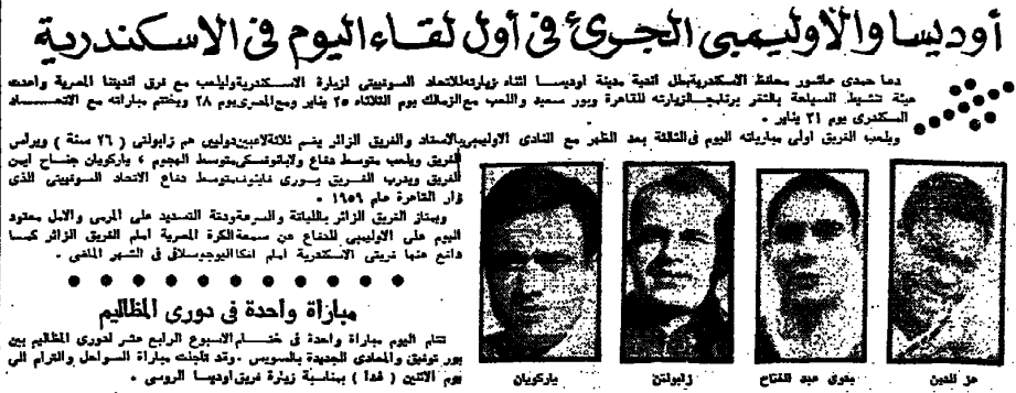 بعد هذه المباراة، واجه الأولمبي المصري البورسعيدي على ملعبهم، كان الفريق يضم "منير جرجيس الليوي، محمد بدوي، وشاهين" وفي بورسعيد كان انتماء معظمهم واضحًا لنادي الزمالك، امتلأت المدرجات عن آخرها، يقول هيبة :" لكننا استمرينا في التشجيع والمساندة بحماس حتى جاءت كرة من منتصف الملعب، وسجل عز الدين يعقوب هدفًا رائعًا من تسديدة من مسافة 60 ياردة فى مرمي سيد عبدالله حارس المصري والفراعنة في ذلك الوقت".