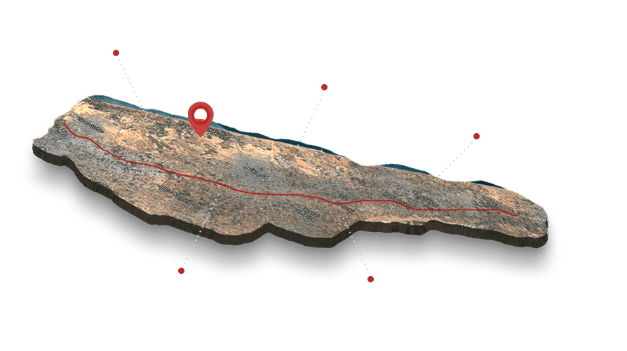 يمتد من إسرائيل من منطقة جبل شجرة البقار القريبة من مستوطنة سديه بوكر حتى البحر المتوسط قريبا من منطقة الزهراء.