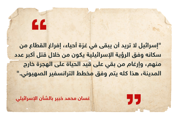"في المحصلة ما تريده إسرائيل هو قتل أكبر عدد ممكن من سكان غزة، حتى لا يبقى منهم من يعود إلى القطاع في المستقبل، وفقًا لما ذكره المختص بالشأن الإسرائيلي، والذي أكد على أنّ إسرائيل تقتل المدنيين بالغارات الجوية، وتزعم أنّها أنّها مستعدة لفتح ممرات آمنة لخروجهم من غزة، فكيف نصدق الأكاذيب الإسرائيلي؟.