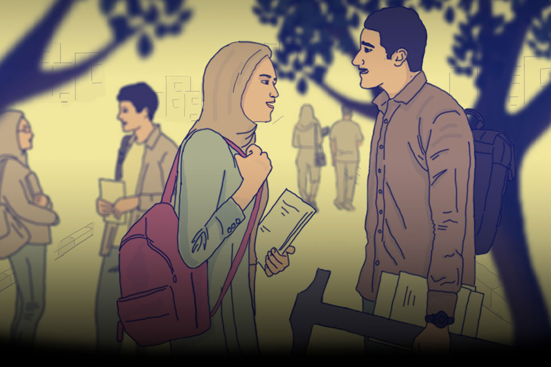 جاورت الأعراس المآتم في عدن، بينما يبكي البعض على رحيل فقيد، يحتفل آخرون بحياة جديدة، شهدت المدينة علاقة حب الاثنين اللذين التقيا لأول في الجامعة، بينما كانت هي في عامها الدراسي الأول، وهو في عامه الثالث، وقررا الارتباط رسميًا، والتحضير للزواج، لكن نظرًا لما فرضته الحرب من الظروف لم تشترِ هي أو خطيبها وقتذاك ملابس جديدة، اكتفيا بما لديهما من ملابس، حتى أن البيت لم يكن مفروشًا بالكامل، نظرًا إلى غلاء الأسعار خاصة المواد الغذائية علاوة على إغلاق الموانئ وتوقف حركة توريد البضائع، حتى أن الموظفين لم يكونوا يتلقون رواتبهم الشهرية ولا يحصلون على مستحقاتهم المادية.