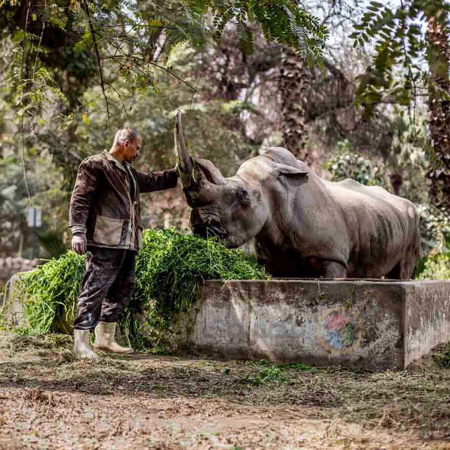 يجلس عم حمدي ساعاتٍ طويلةً يومياً بجوار منزلي "اللاما" و"الخرتيت"، حيث يتولى مسئوليتهما. ينظر الرجل المسن للخرتيت بحزن، ويقول: "الخرتيت حزين لأنه وحيد ومش معاه وليف، ومهما نعمله بينام كدة زي ما أنت شايف، لأنه محتاج حد معاه، لكن صعب نجيب له واحدة دلوقتي، لأنه حيوان نادر".