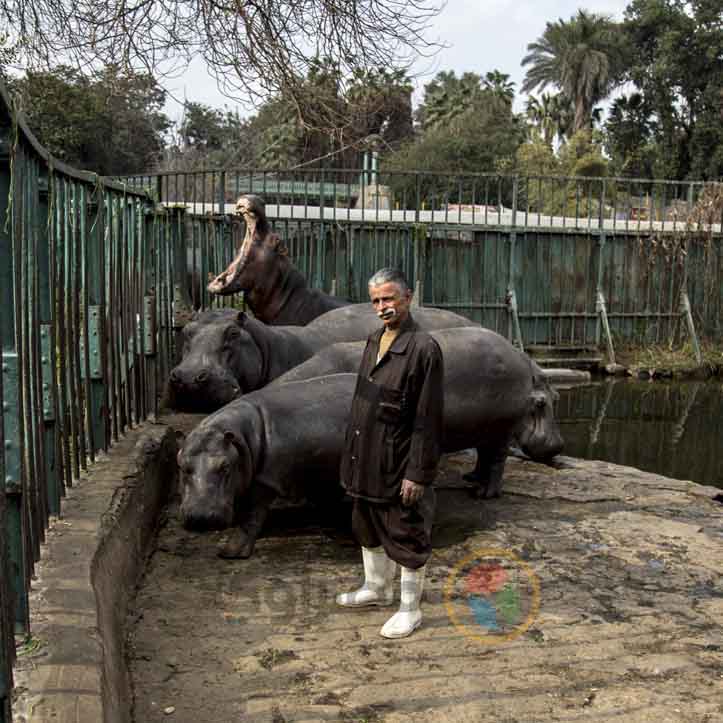 "عارف يا بيه أهو فرس النهر ده هو اللي قتل مينا موحد القطرين، رغم إنه حيوان نباتي لكنه عدو وقاتل للإنسان"..قالها عم محمود الأفندي، وهو داخل القفص يتجمع حوله ما يقرب من ٥ أفراس النهر.