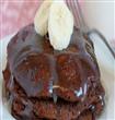 4- ترص حبات البان كيك فى أطباق التقديم وترش بقطر حليب جوز الهند وشرائح الموز وتقدم.