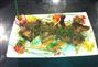 - يُزين خليط الدجاج بخليط الثوم الكزبرة مع الزبيب.