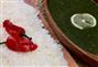 - نجيب ملعقة زبدة ونصف ثوم وكزبرة ناشفة فى طاسة على النار ونقلبها الى ان يصفر لونها ونطشها على الملوخية.