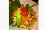 - تُوضع الخضروات الورقية في طبق التقديم، توزع فوقها السلطة.