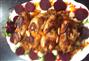 - نحضر صينية ونضع فيها بصل وجزر وطماطم وكرفس ونضع فيها السمان فى الفرن الى ان يتم نضجه وياخذ لون