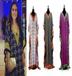 الخامات هي من حرير الكريب ومطرزة بالحبيبات الكريستالية وهي تأتي بألوان متعددة.