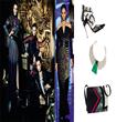 تمتاز الأحذية ذات التصميم المحدب عند أصابع القديمن، والكعوب العالية وأشكالها الفضائية، بوجود أحزمة جلدية ملونة تلتف عند أعلى الكاحل، وتبرز في الحقائب ثلاث أنواع متشابهة من الجلود بأبعاد ثلاثية، مغطاة بخرز صغير للغاية يحمل أنماطاً حيوانية، وتم التشطيب على المظهر النهائي من خلال لمسات من المجوهرات البلاتينية أو الذهبية، كالأساور والأقارط الضخمة.