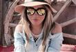ترتدي الممثلة الشابة في احدي الصور، قميص جينز فاتح مع عقد عريض، وقبعة بيج مع نظارة شمس عاكسة للضوء.