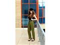 اختارت "Rufina" بنطلون زوجها ذو اللون أخضر، وارتدت معه حزام الخصر ليظهر وكأنه مقاسها، ونسقت معه "توب" أسود مع الكعب العالي.