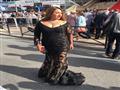 وظهرت بتسريحة شعر تقليدية بلمسة مصفف الشعر المصري، محمد الصغير.